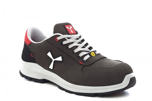 GET FORCE LOW Scarpa di sicurezza bassa da uomo, tomaia in pelle idrorepellente e traspirante, fodera interna (per tutta la superficie interna) traspirante e resistente all’abrasione, 6+6 occhielli metalfree, paratacco in grana pampascon inserto riflettente, puntale in alluminio pressofuso, plantare estraibile Ortholite X40 016 ESD, soletta in lamina tessile certificata antiperforazione, cambrione anti-torsione, sottopuntale a ferro di cavallo, intersuola in poliuretano ultraleggero ESD, ammortizzatore MASTER BALANCE inPU polietere ad alta tenacitа e densitа bilanciata, suola XTRAIL GRIP in TPUESD con paratacco e parapunta. Composizione: FIORE BOVINO Aspetto: Nabuk