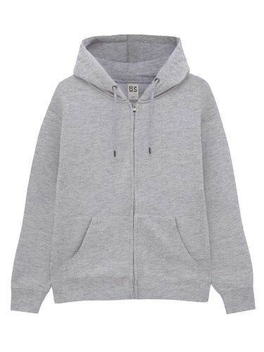 BS343 – Felpa con cappuccio a doppio strato genderless in tessuto ecosostenibile trattato a enzimi, con cerniera tono su tono, occhielli e cordini in metallo. Maniche set-in, tasca a marsupio, cuciture laterali, polsini e fascia in vita in costina. Interno felpato e lavorazione a 3 fili con esterno 100% cotone per stampa di qualitа, stabilitа e resistenza ai lavaggi. Etichetta taglia al collo ed etichetta laterale strappabile con logo, composizione e istruzioni. Composizione: 80% cotone organico, 20% poliestere riciclato. Peso 280 gr.