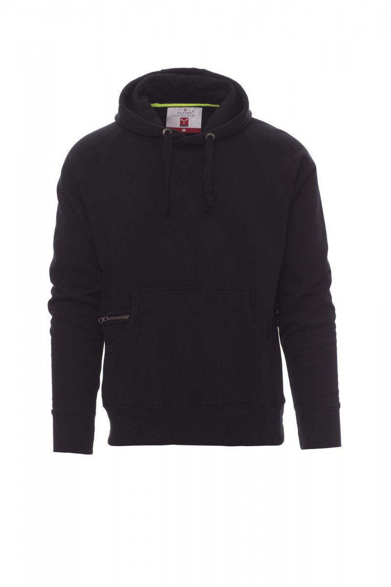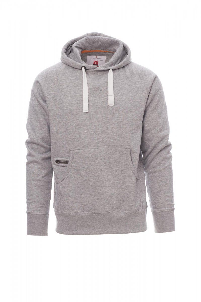 ATLANTA+ Felpa da uomo, cappuccio a due cuciture, coulisse bianca in corda con cuciture in tinta con la felpa e anelle in metallo, manica raglan, cucitura estetica a V al collo, tasche a marsupio, taschino con zip, polsini e vita in costina elasticizzata, cuciture rinforzate. Composizione: 70% COTONE + 30% POLIESTERE Peso: 300 GR/MQ