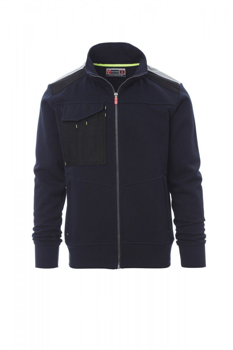 WORK 2.0 Felpa da uomo, zip intera SBS in plastica con cursore in metallo “autolock”,due tasche con cerniera, una tasca multifunzione al petto con porta badge a scomparsa e patta di chiusura LOCK SYSTEM, bande riflettenti alle spalle, polsini e vita in costina elasticizzata, doppia cucitura al collo, alle maniche e in vita e nastro di rinforzo al collo. Trattamento del tessuto water repellent. Composizione: 70% COTONE + 30% POLIESTERE Peso: 300 GR/MQ