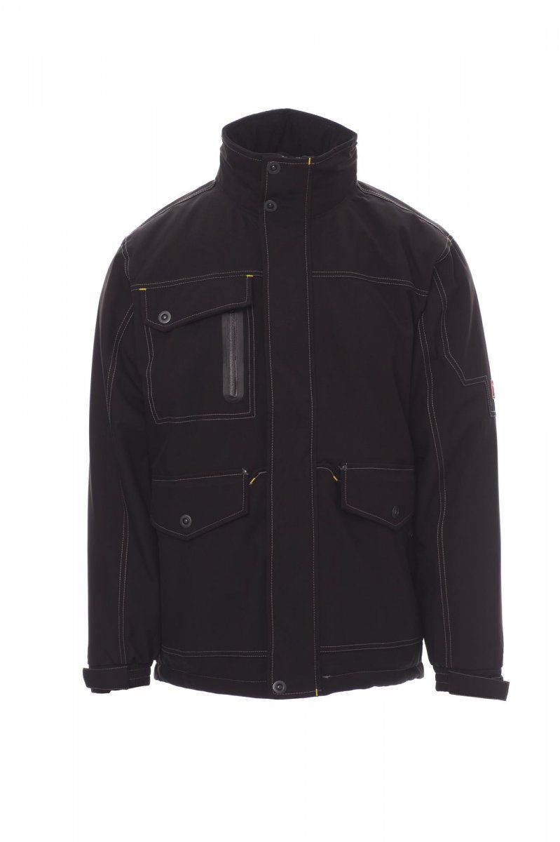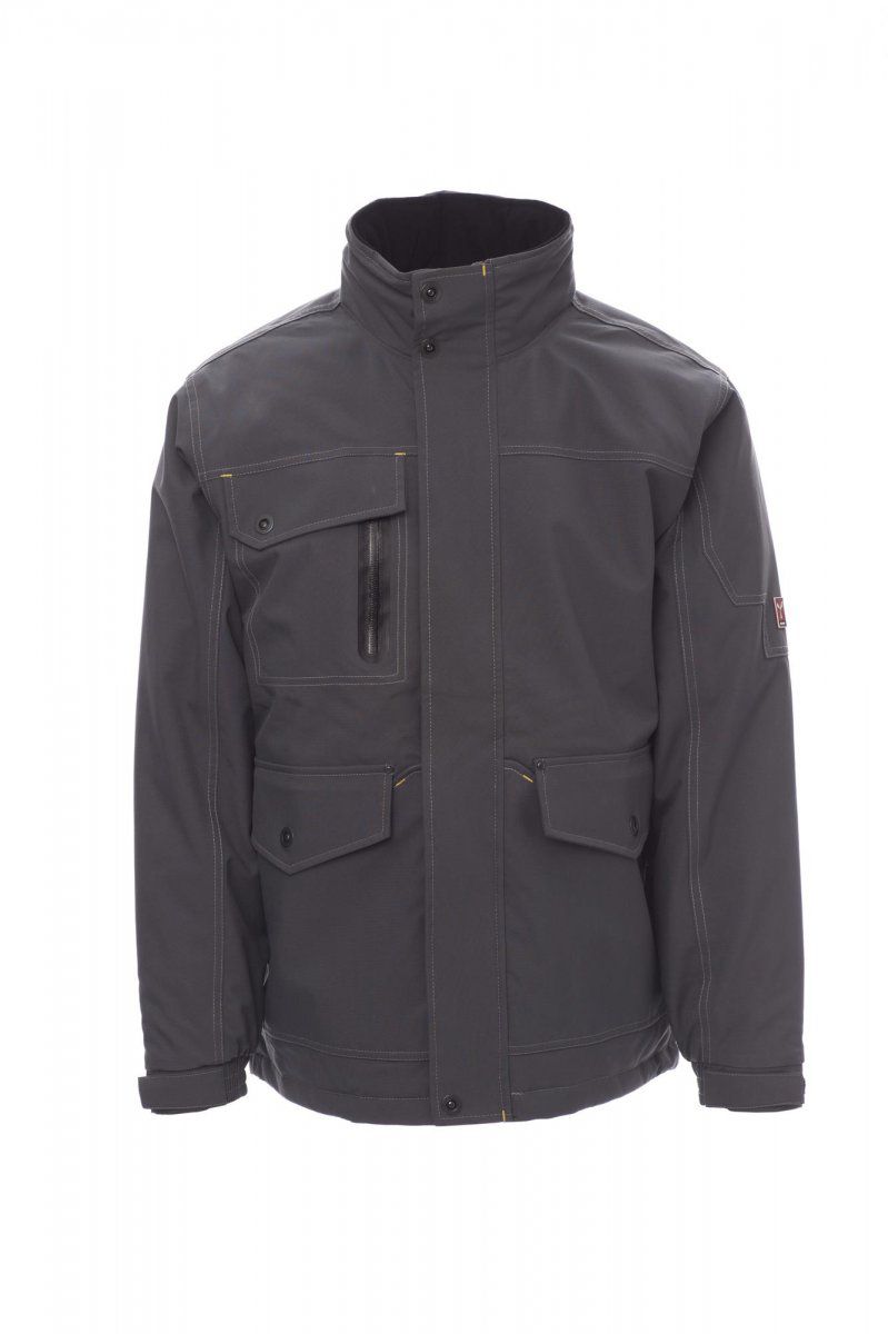 THUNDER Giubbotto da uomo, zip 8mm in plastica e patta di copertura con velcro, tessuto tecnico traspirante, elasticizzato, cuciture termosaldate, cappucciosagomato richiudibile nel colletto, polsini regolabili, 4 ampie tasche frontali di cui 2 con patta e cerniera, due al petto con cerniera nastrata, bottoni automatici in metallo, cuciture a contrasto silver grey. Interno: imbottito, fodera in maglia di poliestere. Composizione: 100% POLIESTERE Peso: 190 GR/MQ