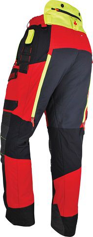 INPA Pantaloni antitaglio di protezione per seghe a catena classe 3 tipo A. Tasche: 2 tasche frontali italiane con zip, 1 tasca di misurazione, 1 tasca portachiavi con candela, 1 tasca sulla gamba sinistra, 1 flangia portautensili, 3 staffe M.O.L.L.E. Protezione: 9 strati: 100% poliestere, 140 g di rivestimento in coolmax, rinforzi per le ginocchia, armortex e coscia destra in kevlar. Caratteristiche: Fascia in rete traspirante, elastico in vita, bottoni per bretelle, 1 tasca medicazione, ghette rimovibili con gancetti di fissaggio. COMPOSIZIONE: Nylon a 4 vie elastico antimacchia trattata al 92% sul fronte,idrorepellente rosso e giallo trattato.