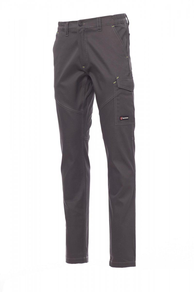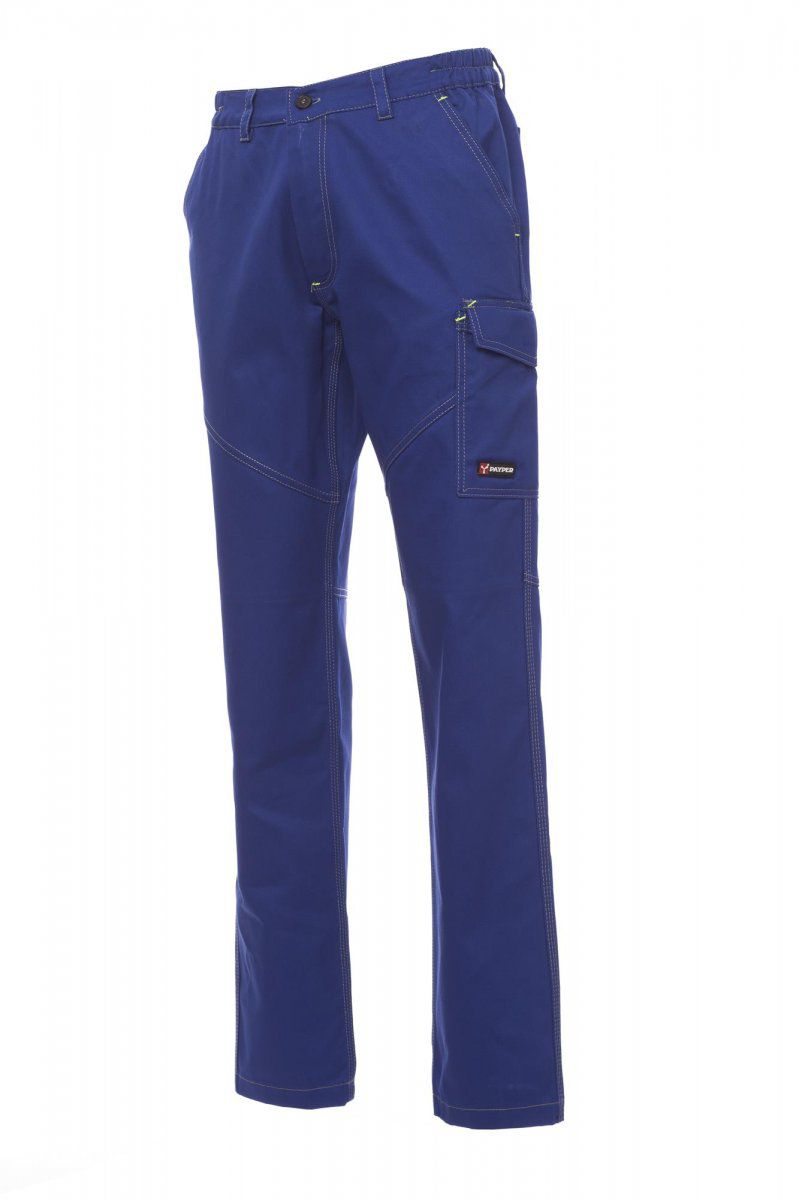 WORKER Pantalone unisex, multistagione, elastici laterali e passanti in vita, chiusura con zip e bottone in plastica, due tasche anteriori a taglio classico, una tasca laterale LOCK SYSTEM, un porta metro, due tasche posteriori una aperta e una con patta e velcro, inserti ed impunture a contrasto, bande reflex su tasca posteriore, cuciture triple. Composizione: 100% COTONE. Peso: 260 GR/MQ.