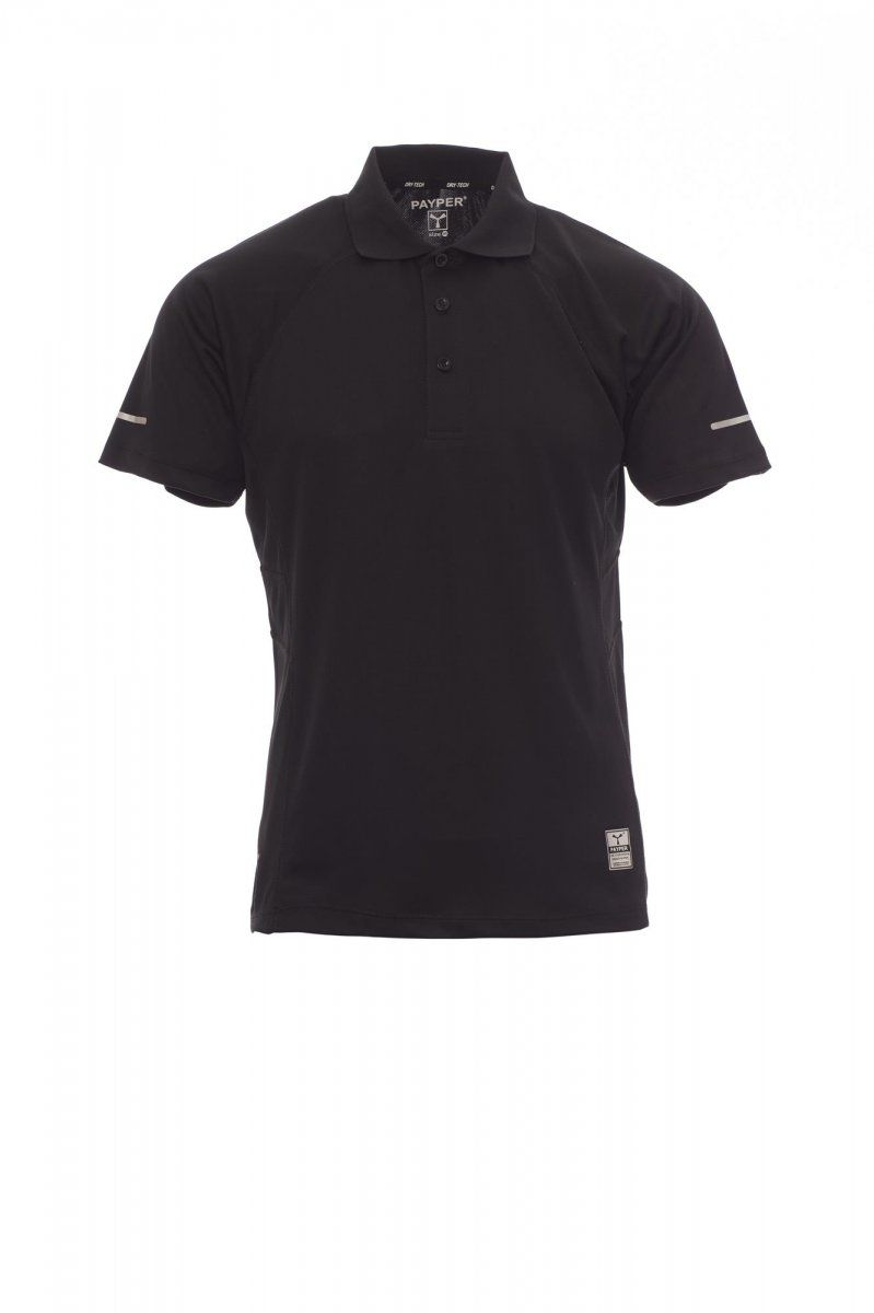 TRAINING Polo da uomo tecnica-sportiva manica corta a tre bottoni in tinta, manica raglan, doppia cucitura laterale per una migliore vestibilitа, fondo sagomato e piщ lungo sul retro, inserto riflettente alla maniche e retro collo, nastratura del collo a contrasto, etichetta transfer. Composizione: 100% POLIESTERE Peso 150 GR/MQ
